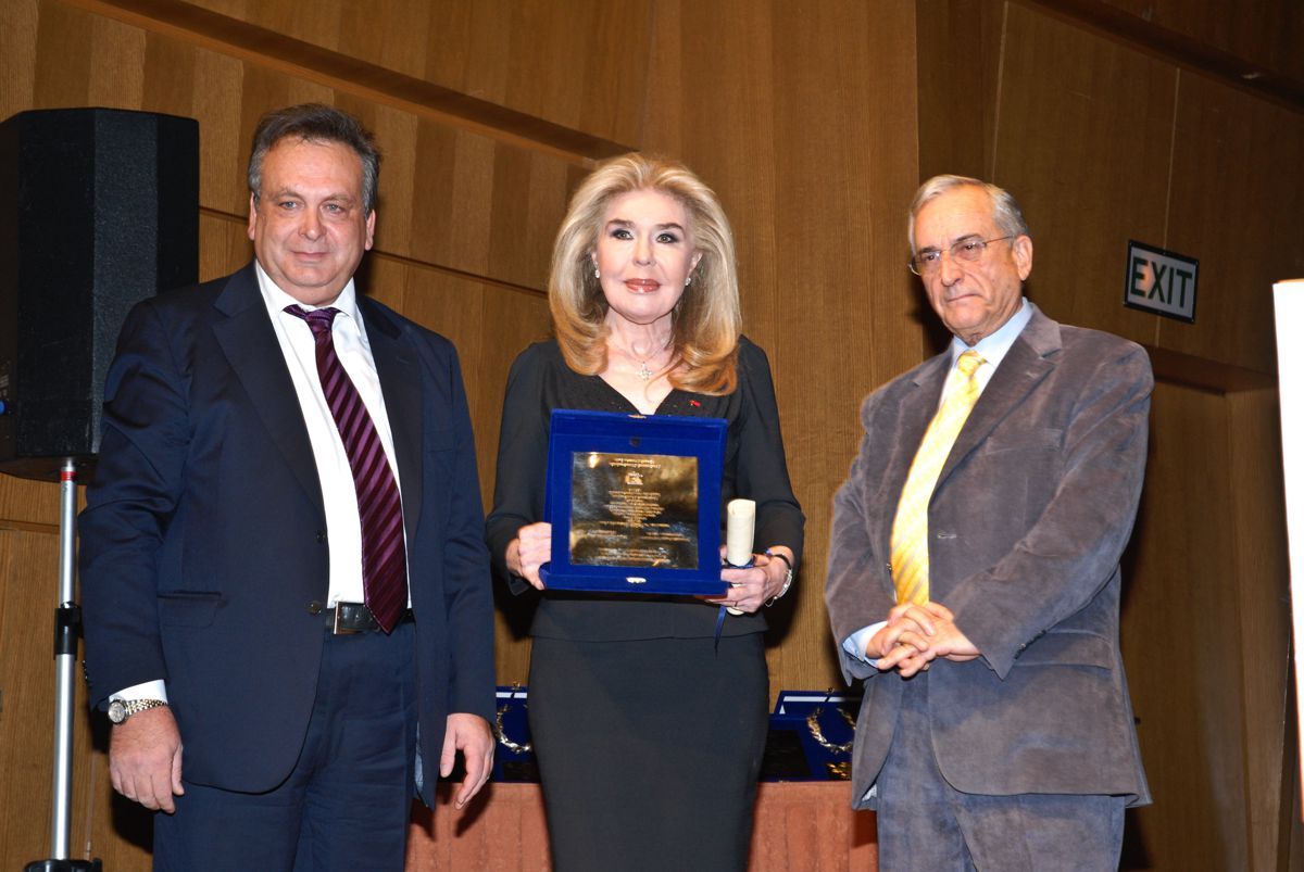 Η Μαριάννα Βαρδινογιάννη, Πρέσβειρα Καλής Θελήσεως της UNESCO, ανακηρύσσεται σε Ύπατη Πρόεδρο του Προγράμματος Οικουμενικού Ελληνισμού. Στην φωτογραφία με τις διακρίσεις και το Προεδρείο του Προγράμματος