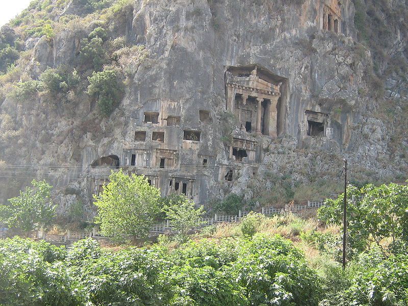 Ανεβήκαμε στο λεωφορείο και διανύσαμε αρκετά χιλιόμετρα διασχίζοντας πευκόφυτες περιοχές με προορισμό τη Λυκία, το νοτιοδυτικό τμήμα της Μικράς Ασίας. Η Λυκία συνορεύει στα δυτικά με την Καρία, στα βόρεια με τη Φρυγία, στα βορειανατολικά με την Πισιδία και στα ανατολικά με τη Παμφυλία. Το μυαλό μου ανέτρεξε στην Ιλιάδα, όταν ο Πάτροκλος σκοτώνει τον εξέχοντα ήρωά της, τον Σαρπηδόνα. εκεί επεμβαίνει ο Δίας και δίνει εντολή στον Απόλλωνα για την ανάληψη του νεκρού Σαρπηδόνα από το πεδίο της μάχης και τη μεταφορά του στην πατρική Λυκία.