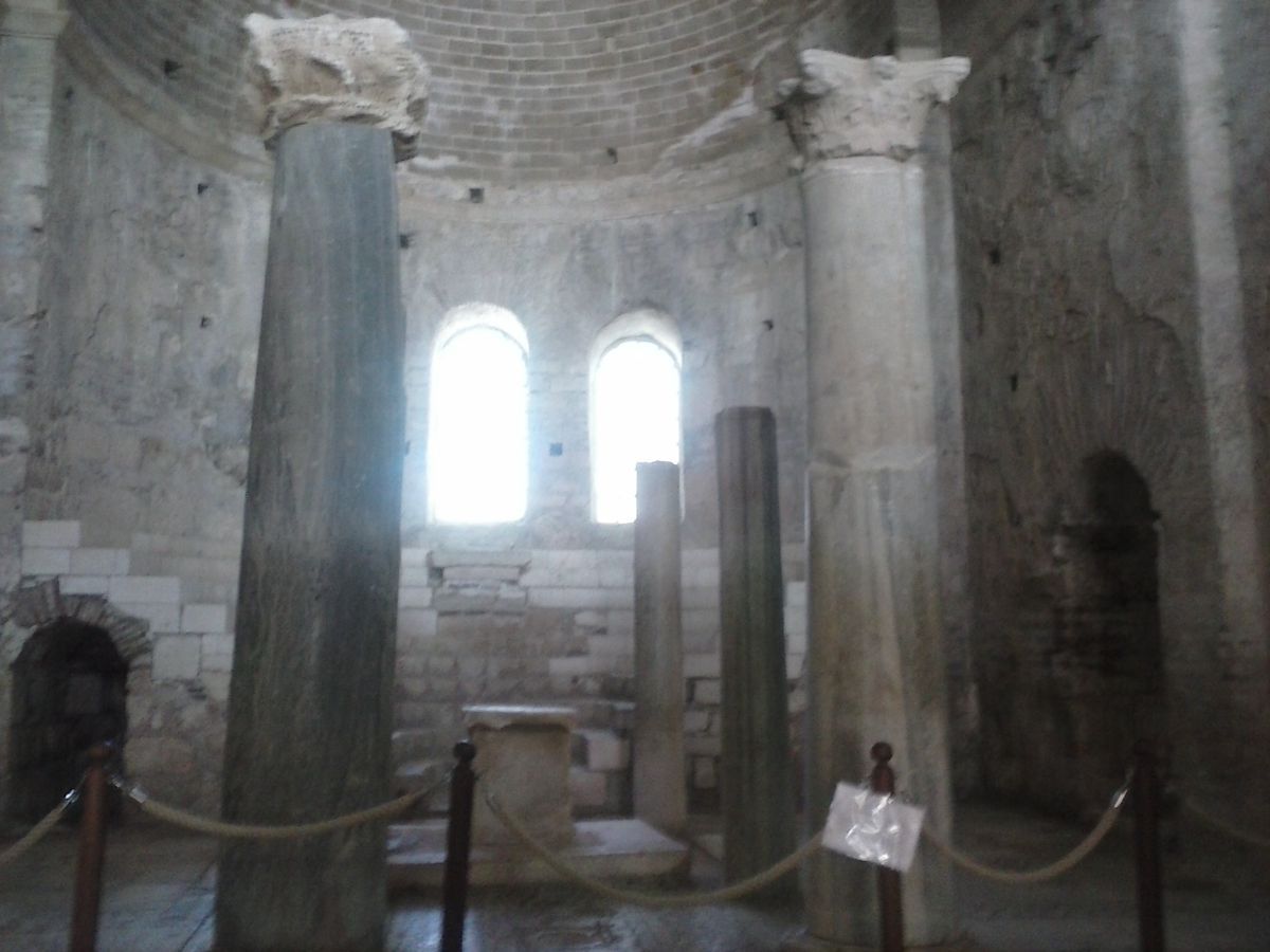 Περπατώντας δεξιά της αγοράς βρεθήκαμε μπροστά στα ερείπια ενός ναού. διασώζεται μόνο ο χώρος του ιερού. Η επιγραφή ανέφερε στα τουρκικά «Βασιλική -6ος αιώνας», αφιερωμένη στον Απόστολο Παύλο, ο οποίος σε περιοδεία του μετά την Αντιόχεια βρέθηκε στην Πέργη.
