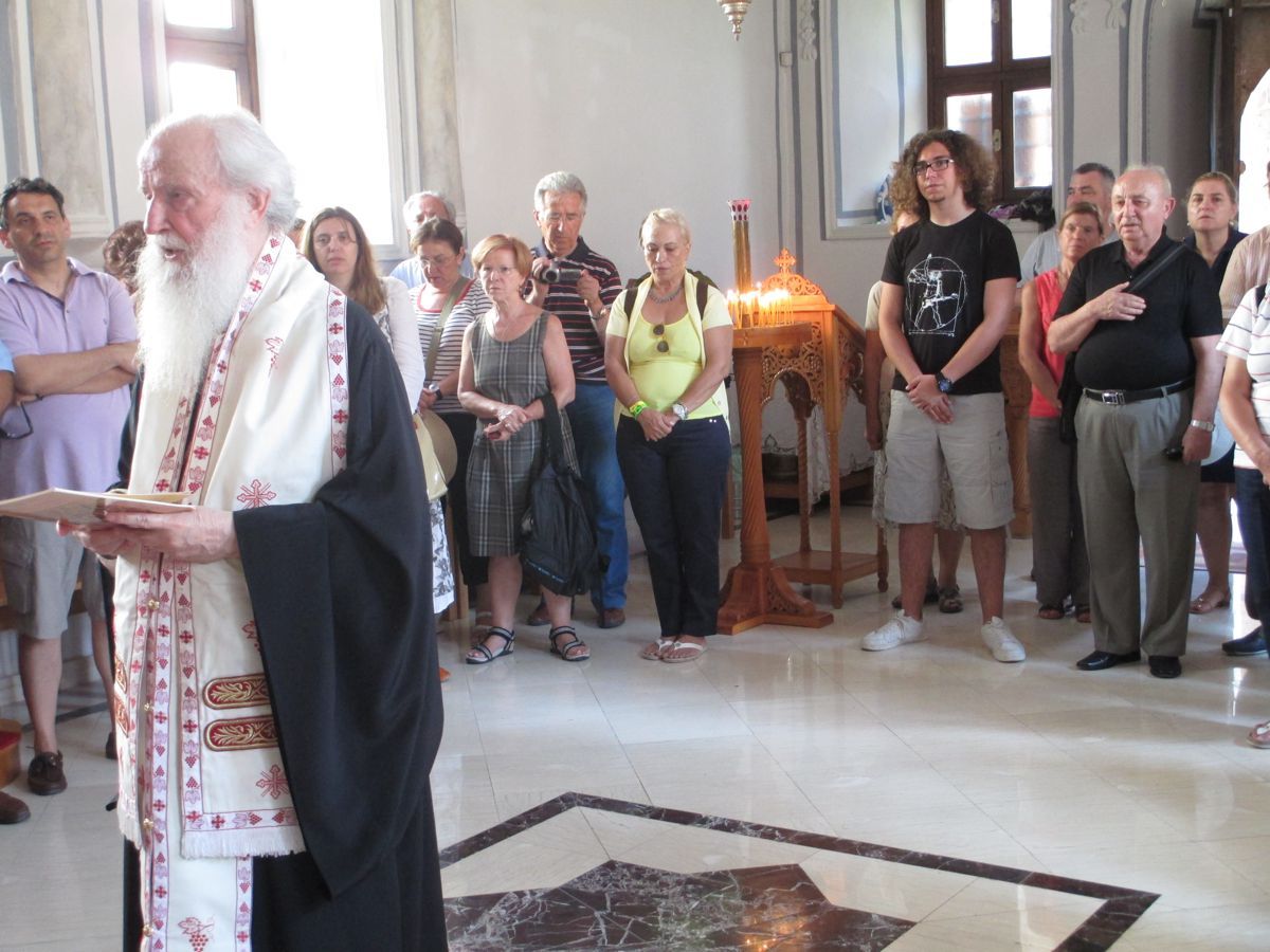 Βρεθήκαμε στο ναό των Αγίου Αλυπίου και Αποστόλου Παύλου, τον πρώτο ορθόδοξο ναό που λειτουργεί κανονικά με μόνιμο ιερέα εκτός περιοχής Κωνσταντινούπολης μετά το 1922 και ο οποίος ανακαινίστηκε πρόσφατα με φροντίδες του οικείου ποιμενάρχη. Χοροστατούντος του Μητροπολίτη Πισιδίας κ. Σωτηρίου και με χορό κυριών από τη Ρωσία στο ψαλτήρι, παρακολουθήσαμε την κυριακάτικη Θεία Λειτουργία με ιδιαίτερη πνευματική κατάνυξη. Ο μητροπολίτης, μετά από μία δέηση καλωσορίσματος, μας υποδέχτηκε και σε προσφώνησή του αναφέρθηκε στον ηρωισμό, τη θερμουργό πίστη, την ειρήνη ψυχής και την ακατάβλητη θέληση των χιλιάδων Μαρτύρων της Εκκλησίας πού έβαψαν με το αίμα τους την Αγιοτόκο Πισιδία και Παμφυλία. Μάλιστα δε σε μία μόνο μέρα εορτάζουμε μαζί 15.000 μάρτυρες της Πισιδίας. Στο τέλος ο Σεβασμιότατος μας έδωσε ως ευλογία την εικόνα της «Συνάξεως των εν Πισιδία διαλαμψάντων Αγίων»,ενώ σε αντιφώνησή του ο κ. Σταύρος Πανουσόπουλος, Πρόεδρος του Οικουμενικού Ελληνισμού, τόνισε τη σημαντικότητα της διακονίας του μητροπολίτη στην αιματοβαμμένη αυτή γη, του προσέφερε δε ένα βιβλίο ως αναμνηστικό δώρο. Ένας από τους τελευταίους αγίους μάρτυρες της Τουρκοκρατίας έλκει την καταγωγή του από την Αττάλεια, ο άγιος Γεώργιος ο νεομάρτυς, ο εξ Ατταλείας, ο οποίος παρέδωσε το πνεύμα του στις 25 Ιουνίου 1823.