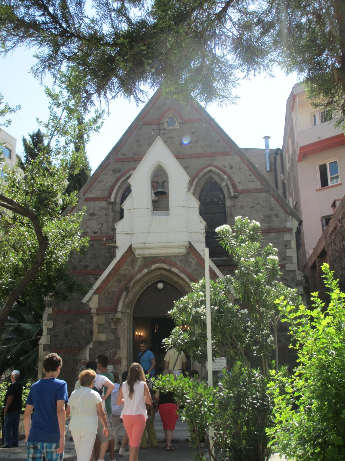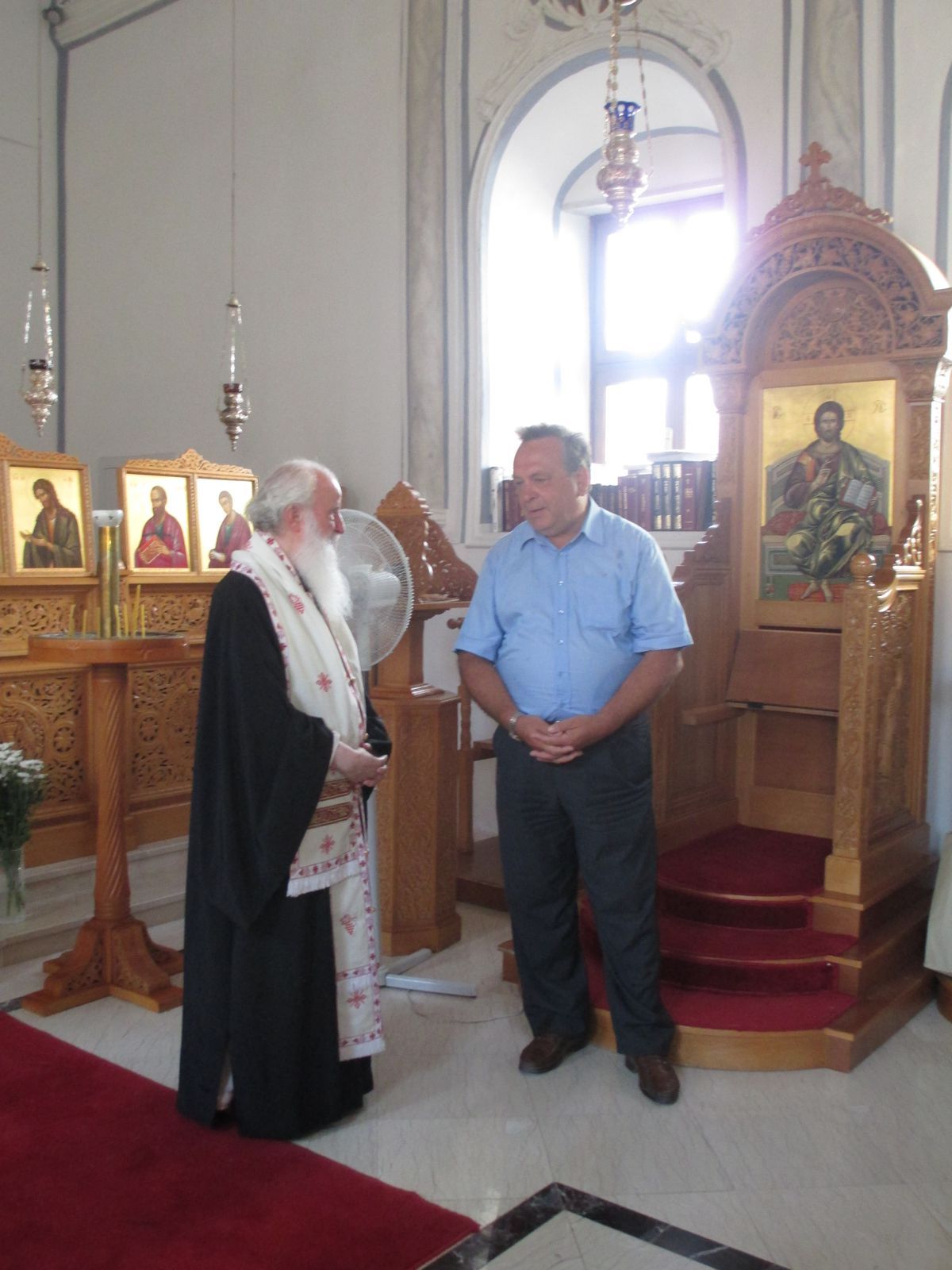 Περπατώντας στην προκυμαία η ψυχή μας ζεστάθηκε αντικρίζοντας περήφανη να κυματίζει η γαλανόλευκη σημαία. Ήταν το ελληνικό προξενείο της Σμύρνης, όπου εκπρόσωπος του προξένου μας υποδέχθηκε με θερμό καλωσόρισμα και ελληνικά κεράσματα. Μας ενημέρωσε για τη Σμύρνη του σήμερα και τη δυνατότητα δραστηριοποίησης Ελλήνων επιχειρηματιών στην περιοχή. Είχε δε την ευγενή καλοσύνη να διαθέσει υπάλληλο, ο οποίος με τα κλειδιά που τηρούνται στο προξενείο, μας άνοιξε να προσκυνήσουμε την εκκλησία της Αγίας Φωτεινής. Όχι βέβαια της παλιάς μεγάλης Αγίας Φωτεινής με το μεγαλοπρεπές και εξαίρετης τέχνης μαρμάρινο κωδωνοστάσιο στην περιοχή του σημερινού ξενοδοχείου Hilton. Εκείνη η πρώτη εκκλησία χτίσθηκε τον 17ο αιώνα, κατεξοχήν σμυρναίικος ναός, όπου τελούνταν στη μικρή περίοδο της απελευθέρωσης όλες οι επίσημες λειτουργίες και εθνικές τελετές. Δυστυχώς ο ναός όσο και το κωδωνοστάσιο ανατινάχθηκαν με δυναμίτιδα από τους Τούρκους μετά την καταστροφή του ΄22. Η εκκλησία που επισκεφθήκαμε έχει παραχωρηθεί από το oλλανδικό κράτος για τη θρησκευτική λατρεία των ορθοδόξων της περιοχής και αφιερώθηκε στην Αγία Φωτεινή, σε ανάμνηση του πρώην περικαλλούς μητροπολιτικού ναού.