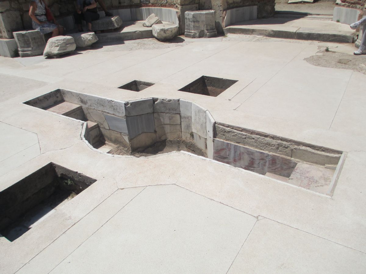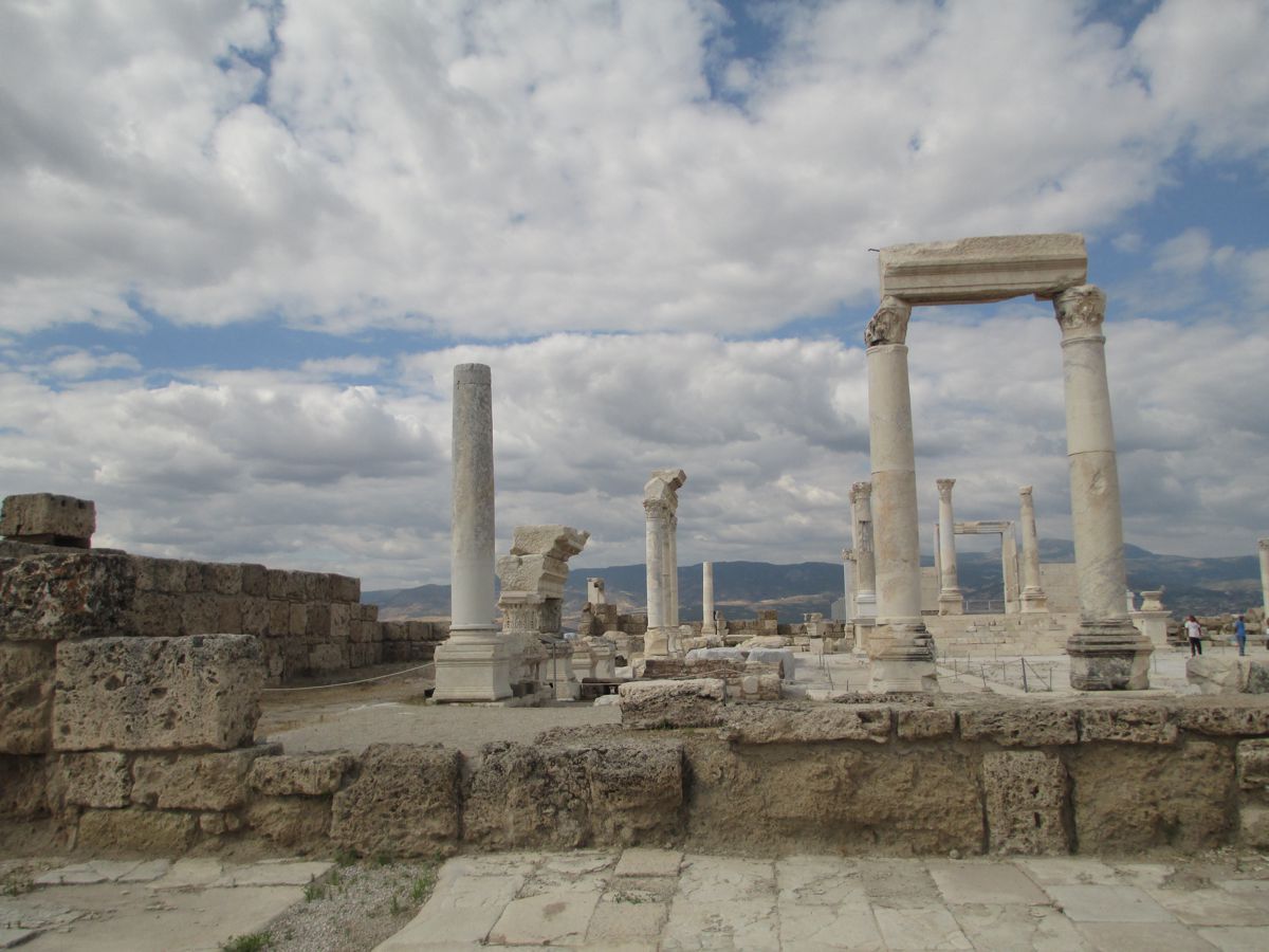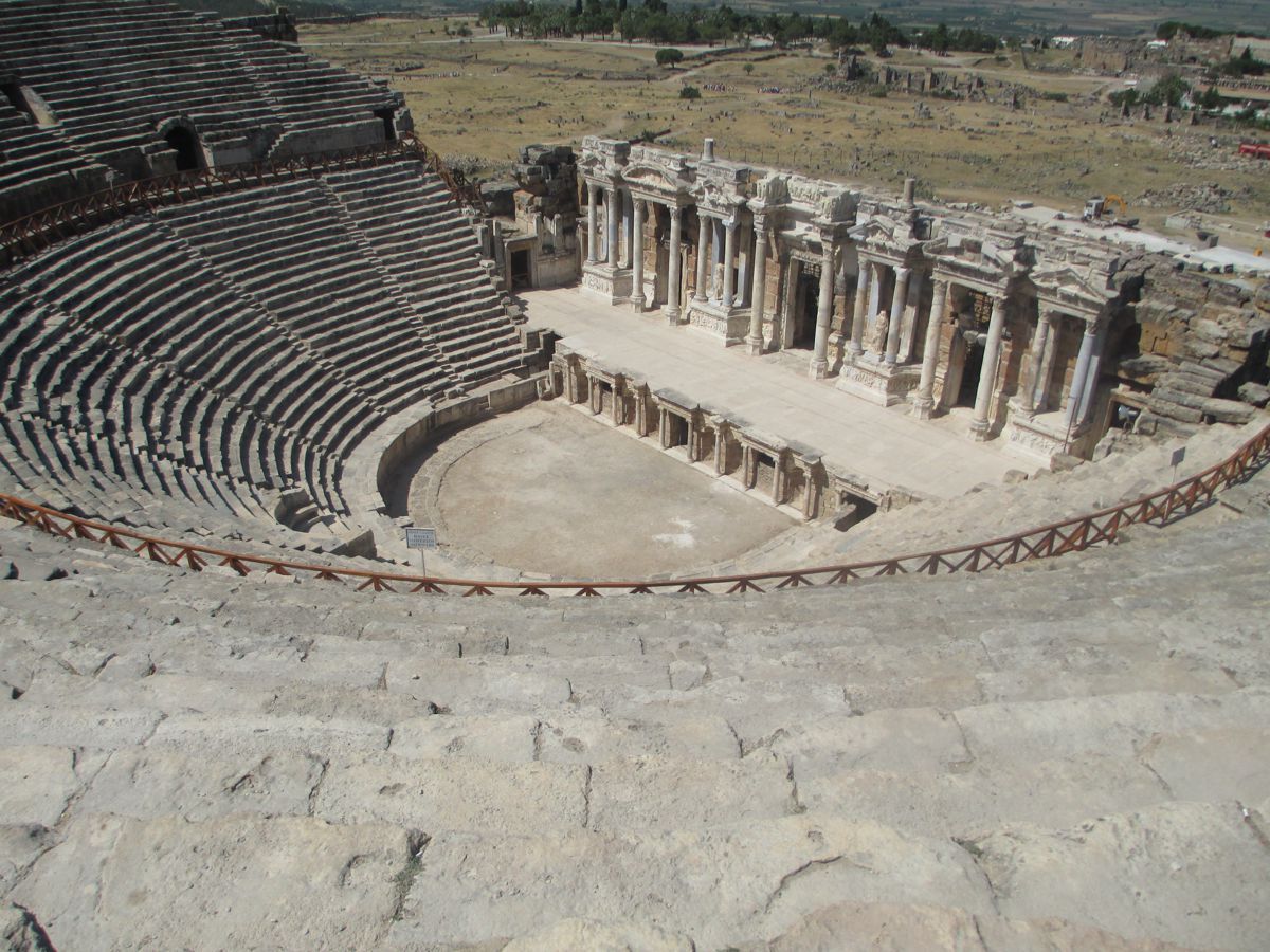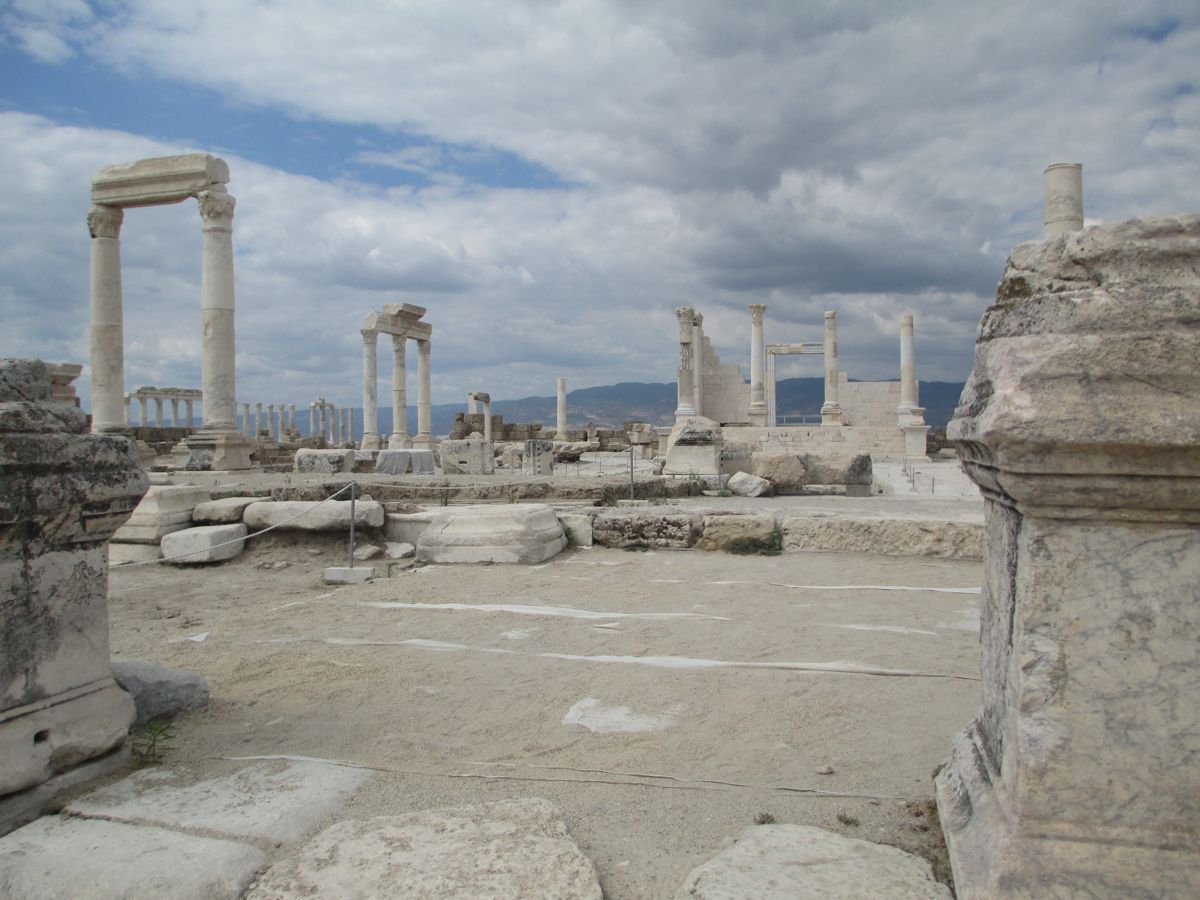 Με ιδιαίτερο ενδιαφέρον προσεγγίσαμε έναν ακόμη υπέροχο αρχαιολογικό χώρο. Η Λαοδίκεια η εν Φρυγία παρουσιαζόταν επιβλητική μπροστά μας. Ο ξεναγός μας αποκάλυψε ότι είχε πάνω από 10 χρόνια να την επισκεφθεί. Στο διάστημα αυτό η αρχαιολογική σκαπάνη είχε φέρει στο φως μεγάλο μέρος της πόλης, ενώ οι ανασκαφές από το πανεπιστήμιο του Παμούκαλε βρίσκονται ακόμη σε εξέλιξη. Εξαιρετικής σημασίας είναι το ψηφιδωτό που ανακαλύφθηκε στην Εκκλησία του Τιμίου Σταυρού. το ονόμασαν τα «Μάτια του Θεού», το πρώτο στην Τουρκία, που όμοιό του έχει βρεθεί σε ιερούς χώρους της Αιγύπτου. Η εκκλησία κατασκευάστηκε με εντολή του Αυτοκράτορα Κωνσταντίνου την περίοδο 312-320 και εντός της υπάρχει βαπτιστήριο που θεωρείται από τα αρχαιότερα του χριστιανικού κόσμου. Η Λαοδίκεια είναι κτισμένη εκεί που ο ποταμός Λύκος συμβάλλει με τον ποταμό Μαίανδρο, σημερινό Εσκί Ισάρ. Οι απαρχές της ίδρυσης της πόλης τοποθετούνται μεταξύ 2ου και 3ου αιώνα π.Χ., μετά το θάνατο του Μεγάλου Αλεξάνδρου. Η περιοχή περιήλθε στην εξουσία του Αντίγονου και αυτός της έδωσε το όνομα της συζύγου του, Λαοδίκειας. Η τοποθεσία στην οποία είναι κτισμένη την καθιστά κομβικής σημασίας, αφού βρίσκεται στο μέσο της διαδρομής Μεσογείου-Εύξεινου Πόντου και κατά συνέπεια υπήρξε σημαντικός εμπορικός σταθμός. Περπατώντας στο χώρο αντικρίσαμε το εντυπωσιακό αρχαίο θέατρο της Λαοδίκειας (2ος π.Χ) χωρητικότητας 25.000 θεατών, ενδεικτικό του μεγάλου πληθυσμού της πόλης. Το σεργιάνι στην αρχαία αγορά μας οδήγησε σε έναν δρόμο με μαρμάρινα τραπέζια, όπου όπως καταλάβαμε χρησίμευαν για επιτραπέζια παιχνίδια, τα οποία, μάλιστα, για διευκόλυνση των διαγωνιζομένων είχαν τη δυνατότητα να μετακινηθούν. Μία από τις επτά εκκλησίες που αναφέρονται στην Αποκάλυψη είναι και αυτή της Λαοδίκειας, μία από τις πρώτες πόλεις που εκχριστιανίστηκαν, η οποία συνδέεται με τον Απόστολο Παύλο.