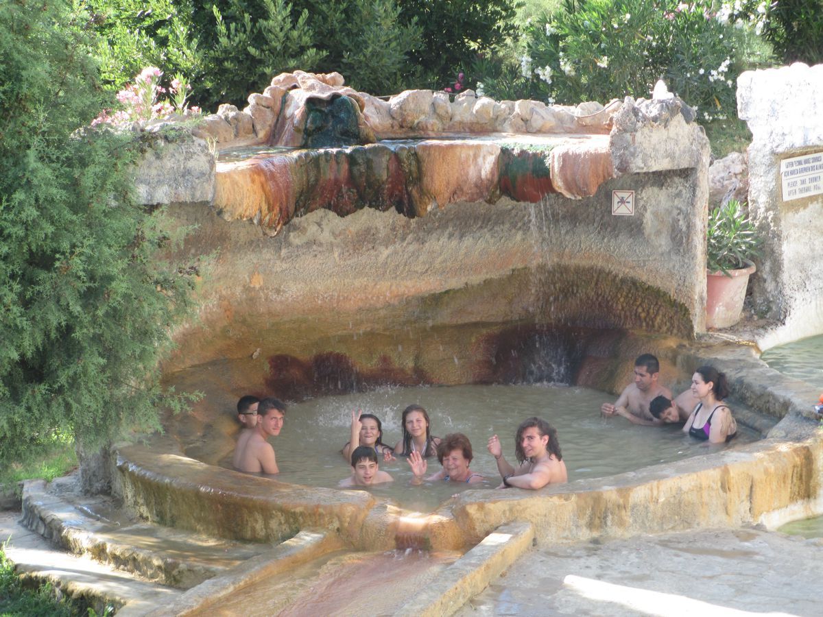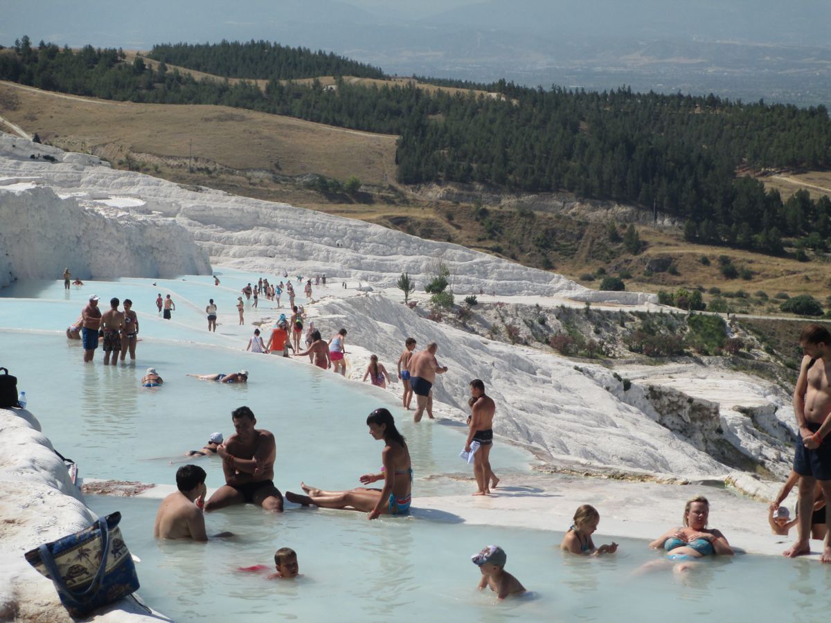 Κατά τη διαμονή μας στο Παμούκαλε σε ένα πολύ ωραίο ξενοδοχείο, είχε τη δυνατότητα, όποιος από εμάς ήθελε, να απολαύσει ένα μπάνιο σε ειδικούς εσωτερικούς ή εξωτερικούς χώρους με ιαματικά νερά, τα οποία πλούσια προσφέρει η περιοχή. Επειδή, όμως, τα νερά χρησιμοποιούνται από πολλά ξενοδοχεία, δυστυχώς, κατασπαταλούνται οι φυσικοί αυτοί πόροι της μικρασιατικής γης.