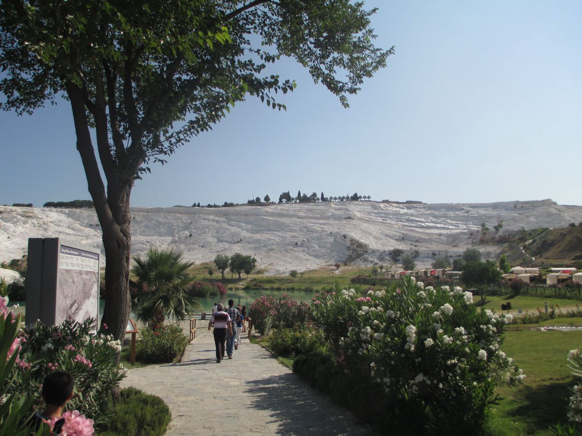 Το ταξίδι συνεχίστηκε και ο μακρύς δρόμος οδηγούσε στην Ιεράπολη της Φρυγίας, το σημερινό Παμούκαλε. H Ιεράπολη είναι ένα θαυμαστό αξιοθέατο που συνδυάζει ένα μοναδικό φυσικό τοπίο με μια εντυπωσιακή αρχαία πόλη. Για το λόγο αυτό προστατεύεται από την UNESCO ως μνημείο της παγκόσμιας πολιτιστικής κληρονομιάς. Το εκθαμβωτικό τοπίο που σχηματίζουν τα ασβεστικά άλατα δημιουργώντας μικρές λιμνούλες βαμβακιού, μας άφησε άφωνους.Πρόκειται για συμπαγείς αποθέσεις ιζημάτων από τη ροή των ασβεστολιθικών υδάτων που αναβλύζουν στην περιοχή. Οι λευκές σχηματοποιημένες λίμνες, οι σταλακτίτες και οι καταρράκτες δημιουργούν μια εικόνα ιδιαίτερης ομορφιάς. Σε αυτούς τους «πύργους από βαμβάκι» οφείλει τη σύγχρονη τουρκική ονομασία της η πόλη, Παμούκαλε. Πολλοί εκμεταλλεύτηκαν τις λίγες ώρες που είχαμε διαθέσιμες για να περπατήσουν στις χαμηλές αυτές κολυμπήθρες που δημιούργησε η πολυμήχανη φύση. Η ομορφιά αυτή της φύσης δημιουργεί ένα περίεργα ευχάριστο δέσιμο με τον παρακείμενο αρχαιολογικό χώρο.