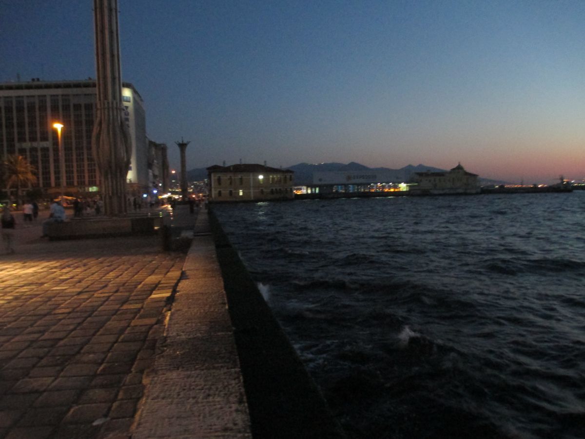 Το βράδυ περπατήσαμε κατά μήκος της προκυμαίας βιώνοντας τόσο διαφορετικά συναισθήματα: συγκίνησης, οργής, πόνου… Το άγαλμα -ένα από τα αναρίθμητα που συναντήσαμε κατά τη διάρκεια του ταξιδιού μας- του έφιππου Κεμάλ Ατατούρκ σε κεντρική πλατεία της προκυμαίας να δείχνει με το χέρι του μακριά προς το Αιγαίο, προκάλεσε τις αισθήσεις και κλόνισε την ψυχή μας. Μεταξύ των συνταξιδιωτών μας πολλοί ήταν απόγονοι Σμυρνιών που ήρθαν να αποτίσουν φόρο τιμής, να προσκυνήσουν τα άγια χώματα, να εκπληρώσουν το μεγάλο τάμα, οι οποίοι δεν μπορούσαν να κρατήσουν τα δάκρυά τους. Άλλων δεν άντεξε η καρδιά ούτε να περπατήσουν στην προκυμαία του «συνωστισμού». Οι μνήμες τόσο ζωντανές, η αγάπη για τον τόπο τόσο αστείρευτη και η ελπίδα κρυμμένη βαθιά μες την ψυχή.