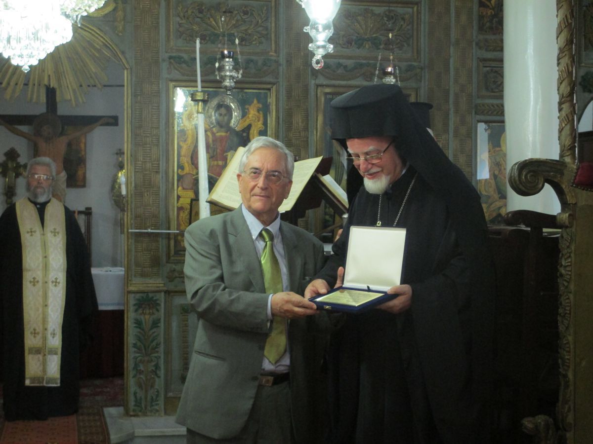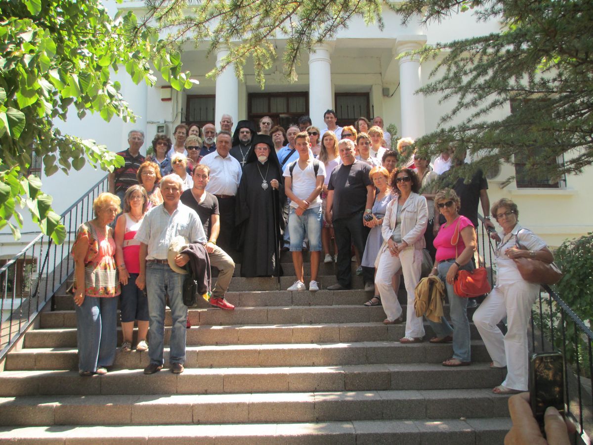 Ήταν 6 Ιουλίου 2013 όταν επισκεφτήκαμε την Ίμβρο. Δύο καραβάκια χρειάστηκαν για περάσουμε από το Τσανάκαλε στην Καλλίπολη και από εκεί στο νησί. Πρώτος μας σταθμός η κωμόπολη της Παναγιάς. Μας υποδέχτηκε ο Μητροπολίτης Ίμβρου και Τενέδου κ. Κύριλλος στον μητροπολιτικό ναό. Είχαμε την ευλογία να χοροστατήσει σε μία δέηση καλωσορίσματος και να λάβουμε την επισκοπική του ευλογία. Προσφωνήσεις έγιναν από τον Καθηγητή ΑΠΘ και Πρόεδρο του Ιδρύματος Εθνικού και Θρησκευτικού Προβληματισμού κ. Αθανάσιο Αγγελόπουλο και από τον Πρόεδρο του Οικουμενικού Ελληνισμού κ. Σταύρο Πανουσόπουλο. Ένα δάκρυ σίγουρα έφυγε από πολλά μέλη της αποστολής όταν ο Μητροπολίτης, με το ύφος και το ζεστό του λόγο κατά την αντιφώνησή του, μας φώτισε πτυχές της ζωής στην Ίμβρο, αλλά και την ανάγκη οι Έλληνες της μητροπολιτικής Ελλάδας να μην ξεχνούν… Μετά την ανταλλαγή αναμνηστικών δώρων ο Σεβασμιότατος φωτογραφήθηκε με τα μέλη της αποστολής στην είσοδο του Αρχοντικού – Επισκοπείου και στο τέλος μας δεξιώθηκε στους ωραίους κήπους του. Είχαμε την ευκαιρία να απολαύσουμε το χιούμορ του, αλλά και την αγάπη του για τα νέα παιδιά, τα οποία προσκάλεσε να καθίσουν δίπλα του, να μιλήσουν και να φωτογραφηθούν μαζί του.