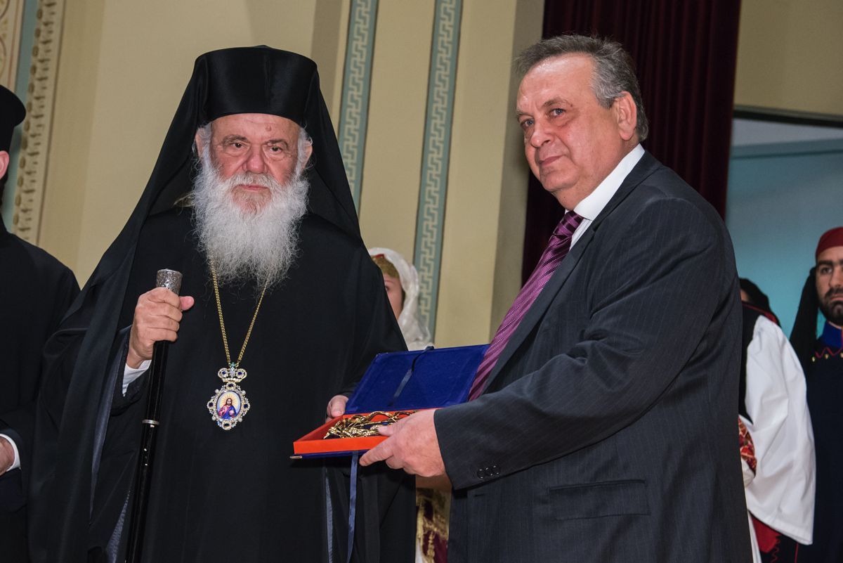 Ο Αρχιεπίσκοπος τιμήθηκε με τον «Χρυσούν Στέφανον» του Οικουμενικού Ελληνισμού από τον Πρόεδρο του Κέντρου Σταύρο Πανουσόπουλο ο οποίος αναφέρθηκε στο δεκαετές πρόγραμμα της καταγραφής-απογραφής του ομογενειακού Ελληνισμού που αποτελεί το εθνικό μας κεφάλαιο.