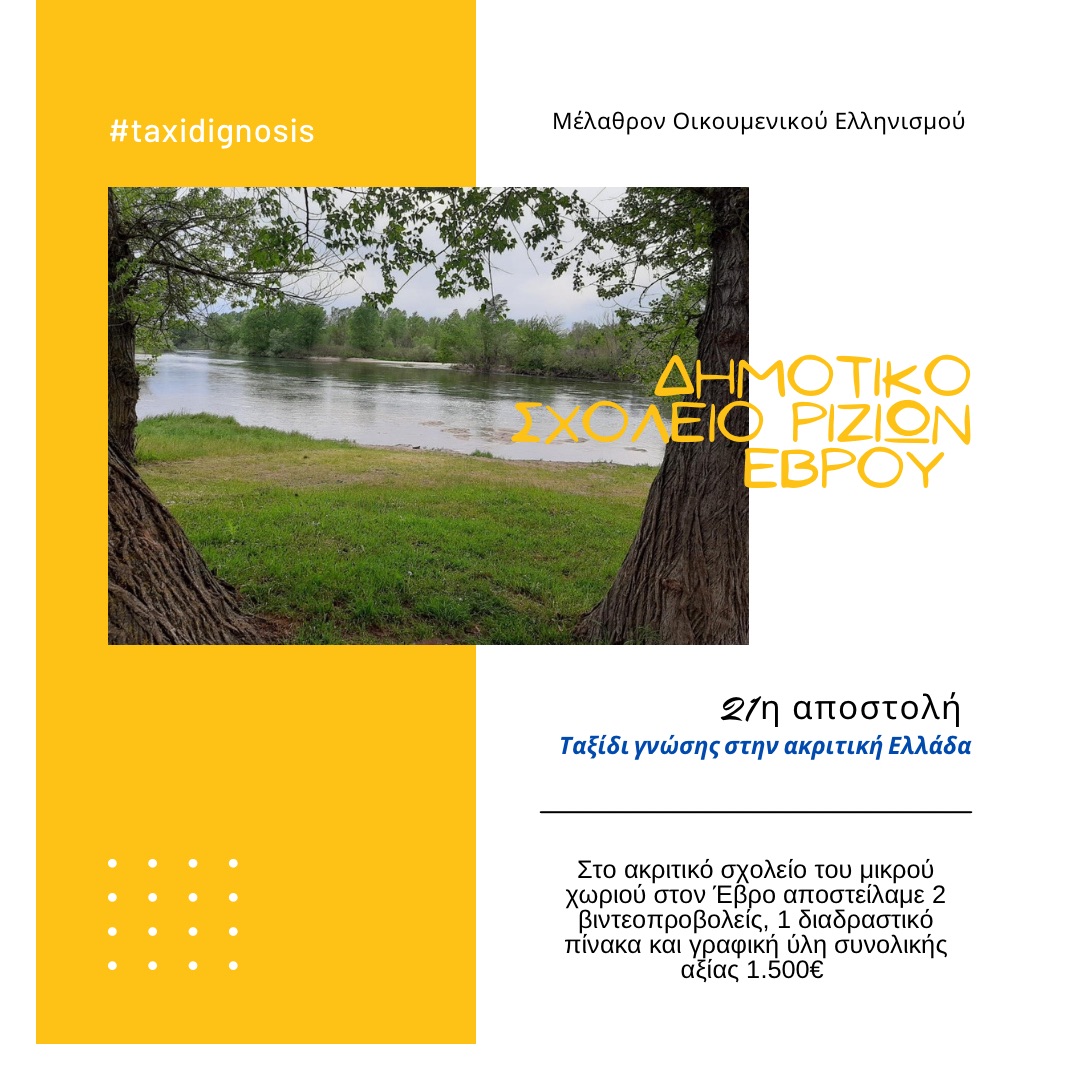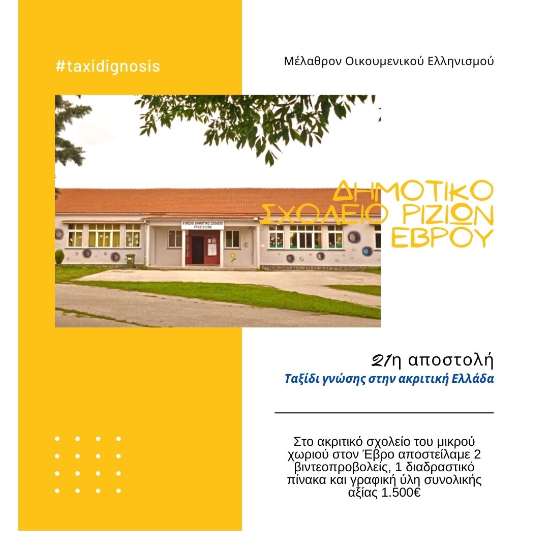 Το Μέλαθρον Οικουμενικού Ελληνισμού υλοποίησε την εικοστή πρώτη αποστολή στο ακριτικό σχολείο του Έβρου και, συγκεκριμένα, απέστειλε: