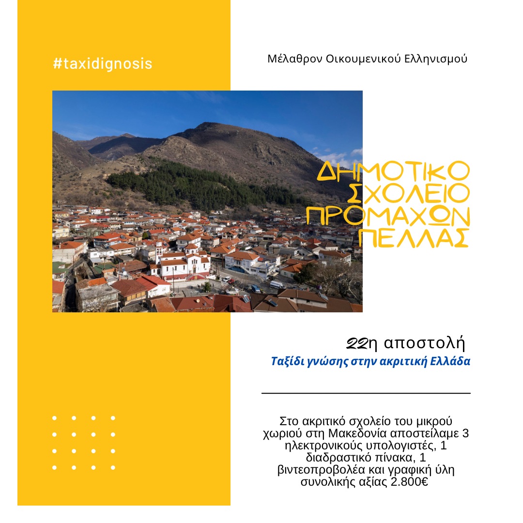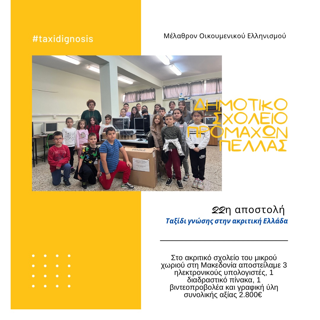 Το Μέλαθρον Οικουμενικού Ελληνισμού υλοποίησε την εικοστή δεύτερη αποστολή στο ακριτικό σχολείο της Μακεδονίας και, συγκεκριμένα, απέστειλε: