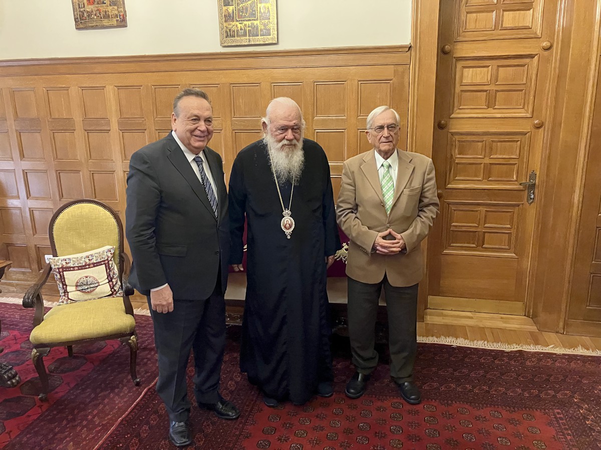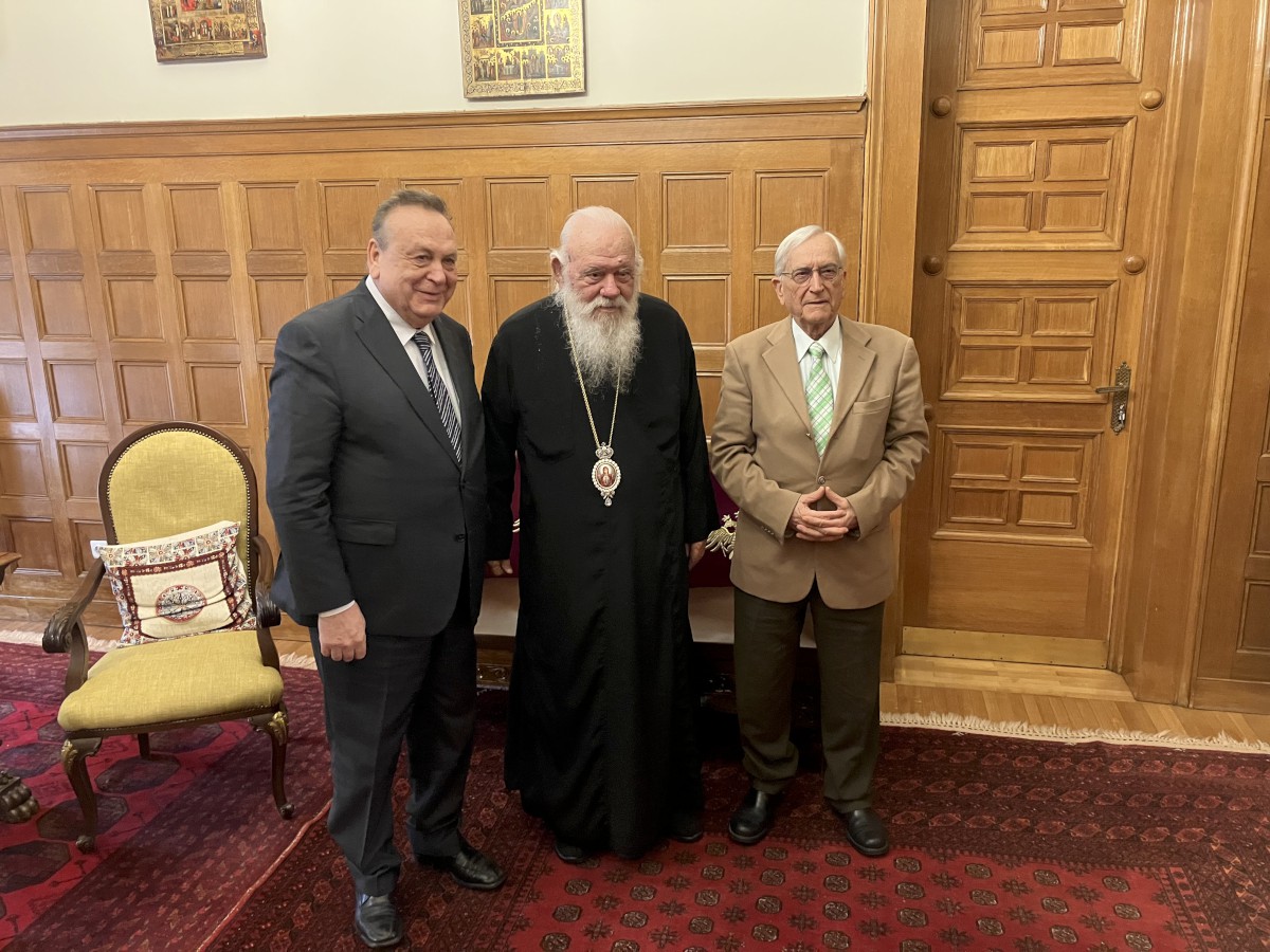 Ο Αρχιεπίσκοπος Αθηνών και Πάσης Ελλάδος κ.κ. Ιερώνυμος, την Πέμπτη 3 Απριλίου 2025, υποδέχθηκε στο γραφείο του τον πρόεδρο του Μελάθρου Οικουμενικός Ελληνισμός, Σταύρο Πανουσόπουλο και τον επιστημονικό επόπτη του Μελάθρου, καθηγητή Πανεπιστημίου, κ. Θανάσιο Αγγελόπουλο.