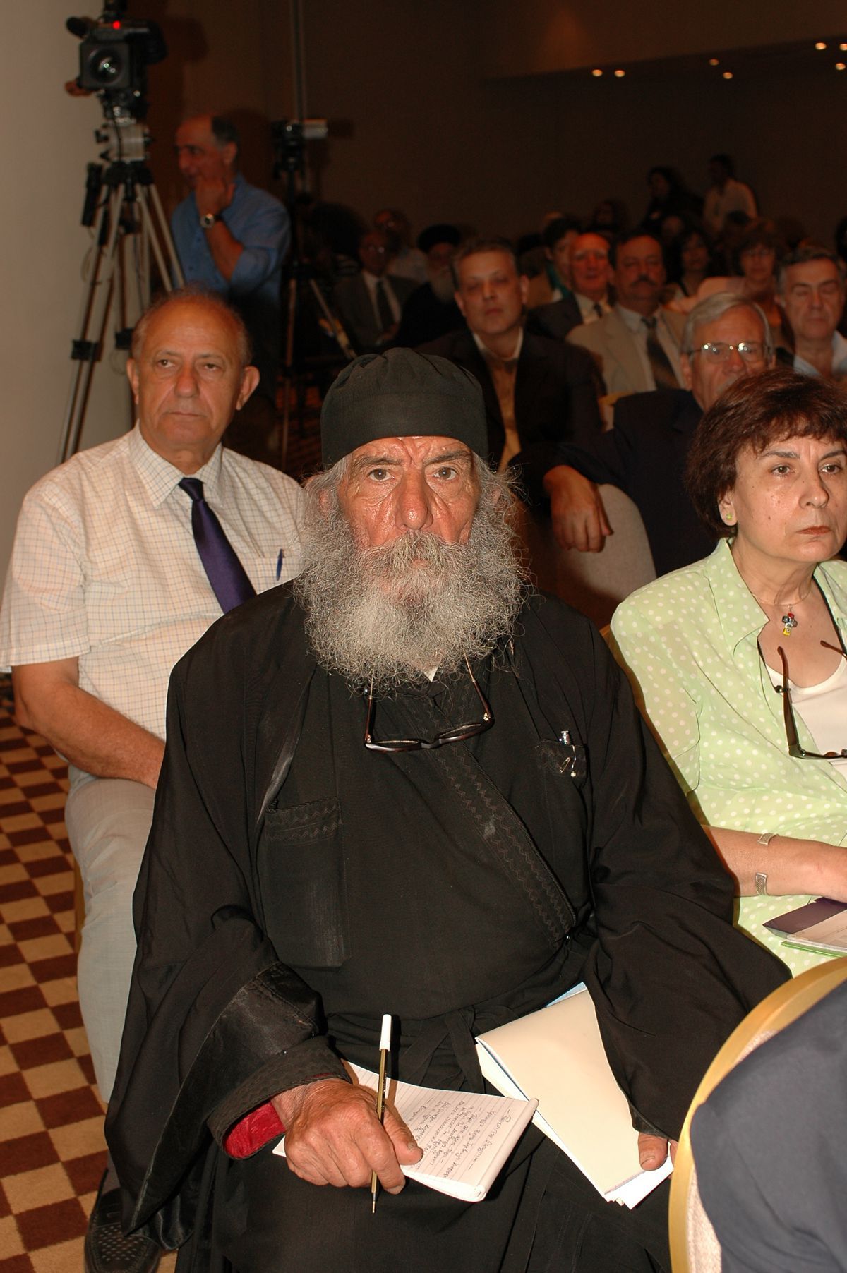The Archbishop of Athens and All Greece, Mr. Christodoulos, met the delegates at St. Varvara. A special evening with great emotions as the Archbishop spoke with all the homogeneity and greeted them by giving everyone a memento of this meeting. It was the evening of Tuesday June 6th, the first day of the conference.